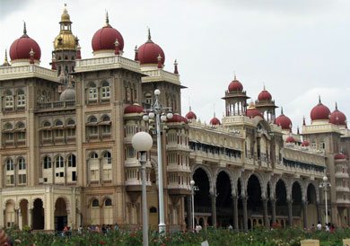 The Ambavilasa, the palace’s second smaller durbar hall follows a close second as my favorite, with its magnificent doorway of carved rosewood inlaid with pure ivory, its lavishly gilded pillars, elaborate floral chandeliers and artfully embedded mosaic floor embellished with precious stones. Apparently the king’s preferred room for private audiences, this spectacular hall also carries forth another version of the stained glass ceiling featured in the larger durbar hall, but here refinement in terms of luxury deliver impressions of boundless richness that can only be experienced in a real palace. The armory exhibited in the palace give one a fairly good idea of the sophisticated yet practical thinking that went into creating some of the armor, revealing the stature a good weapon possessed in those days. Mysore Palace is said to be adorned to its grandest during Dessehra, Mysore’s favorite festival. Ablaze with myriad lights that define its every facet, the Palace is aglow at night every night through the festival whose ostentatious procession partaken by the king himself is its greatest spotlight. Strolling barefoot through the many rooms of this historical palace gives one the sensation of stepping back in time, to the days when the palace would be bustling with the household activity of a King in state and not noisy tourists! Yet, even today, one can sense the reverence that reverberates through every visitor as he steps through the many temples that are a part of the palace. One can see the awe on the faces of young children as they stare up at the splashes of amazingly lively colors of the durbar hall’s ceiling and you are glad, glad that a visit to this wonderful palace that can only be called a grand work of gifted art will remain as lingering memories in the hearts of many others as well.